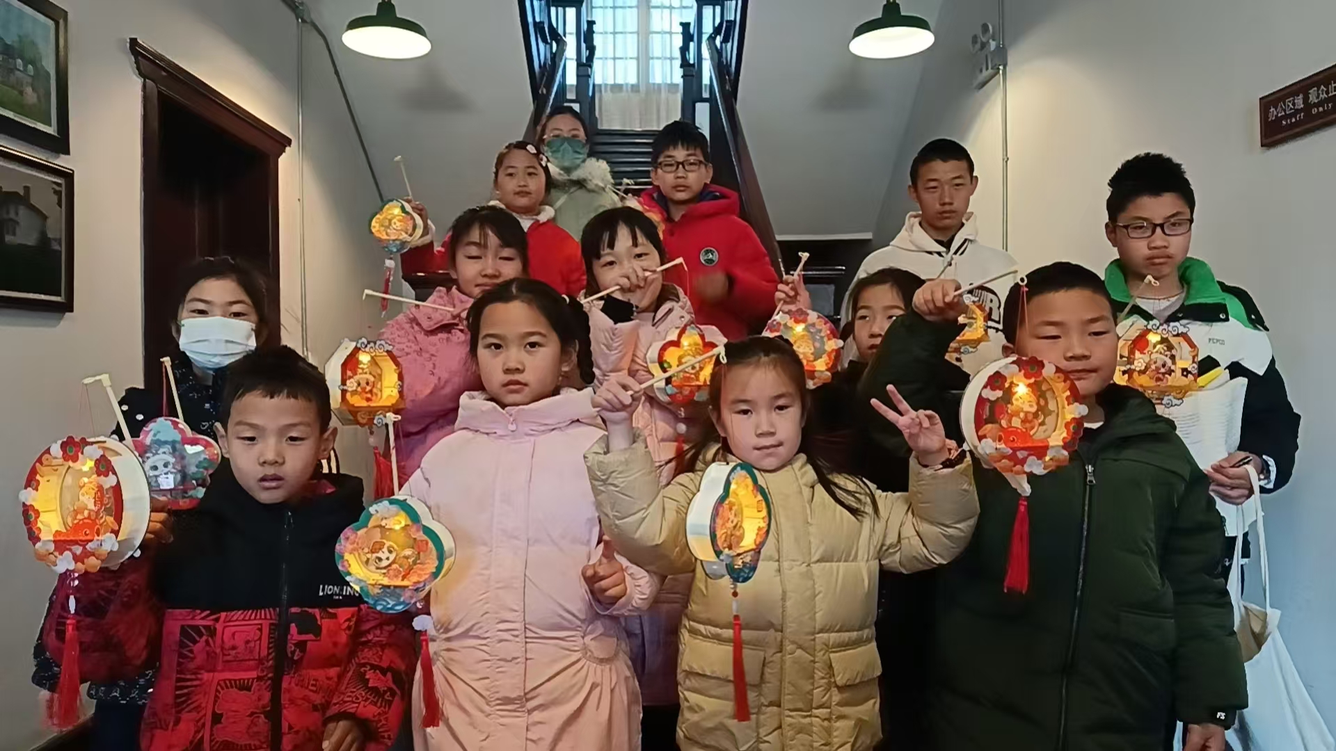 博物馆刘子倩老师生动地讲述了元宵节的由来与花灯的历史文化。小朋友们兴趣渐浓,人人动手制作花灯。彩纸翻飞,创意无限。一盏盏灵蛇主题的花灯璀璨夺目,展现了浓郁的中国风情。在故居内,提着自制花灯巡游,仿佛穿越百年,重温赛珍珠当年闹元宵的场景;故居外寒风凛冽,但猜灯谜环节更是将小伙伴的热情推向高潮,传统文化与趣味游戏在此完美融合。