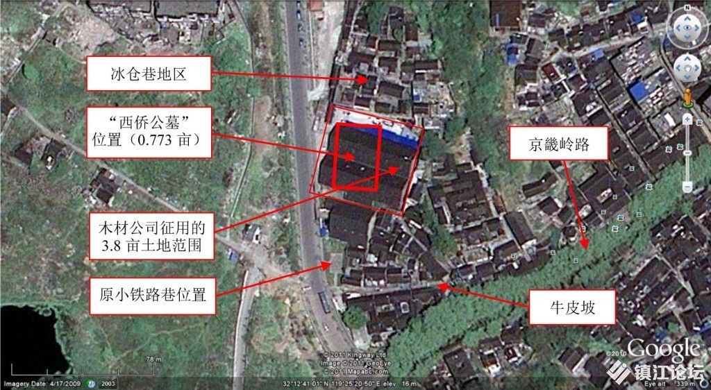 图1:镇江洋人墓地位置卫星地图