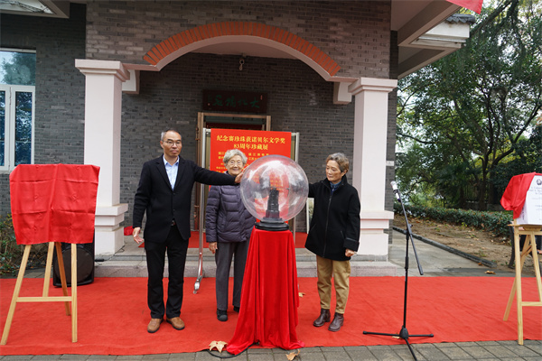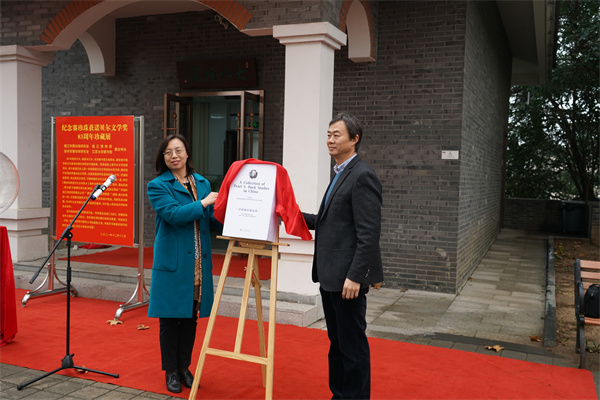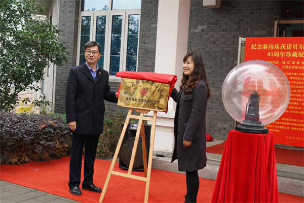 镇江市社科联主席于伟和宿州市赛珍珠研究会居永立为珍藏展揭牌