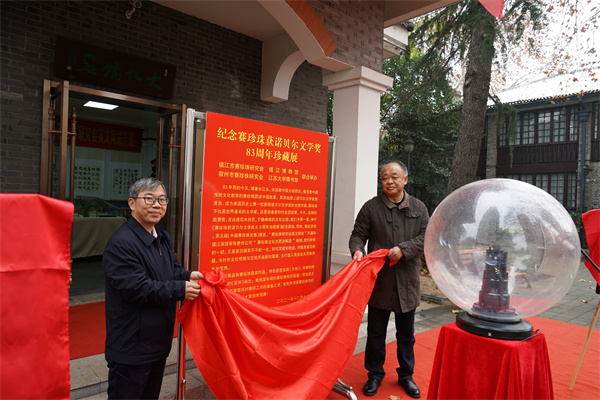 12月12日上午,在赛珍珠文化公园大地翰墨展厅,镇江市赛珍珠研究会举办系列活动纪念赛珍珠获诺贝尔文学奖83周年。活动包括赛珍珠资料珍藏展开展、《中国赛珍珠论集》英文版首发、赛珍珠研究会英文网站开通以及镇江宾馆赛珍珠文化志愿者讲解团队“挂牌”。