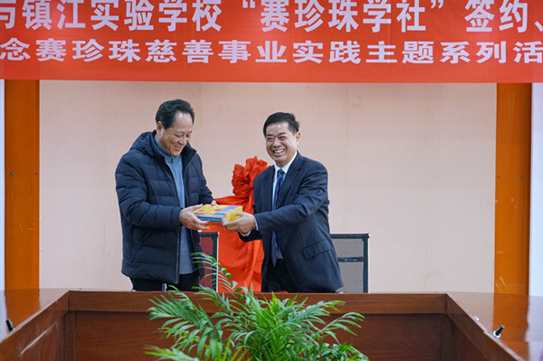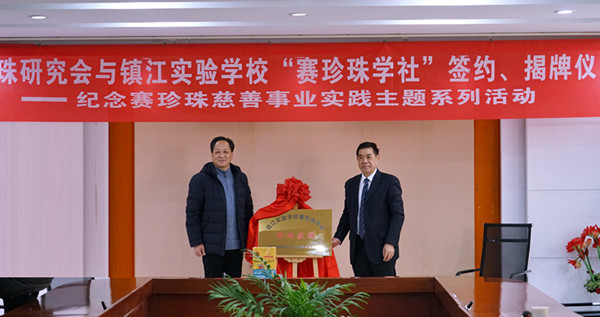 2022年2月28日下午,在镇江实验学校举行了“赛珍珠学社”的签约仪式,镇江市赛珍珠研究会会长卢章平与镇江实验学校校长夏建平分别代表研究会和学校签订了共同举办赛珍珠学社的协议并为学社揭牌。随着“赛珍珠学社”的挂牌,标志着赛珍珠文化正式扎根于小学。镇江市赛珍珠文化艺术职业培训学校的老师将从当日开始,每周一进校园对“赛珍珠学社”的学生进行赛珍珠生平的介绍,赛珍珠作品的朗读赏析,培训同学们成为赛珍珠纪念馆的小小讲解员与赛珍珠文化的传播者;每月一次邀请同学们来到“珍珠家园”与残障人士人进行社会融合实践活动,培养积极向上的心态,更好地应对生活、学习中的挫折,达到“能量流动、心理互助”的社会融合新模式。