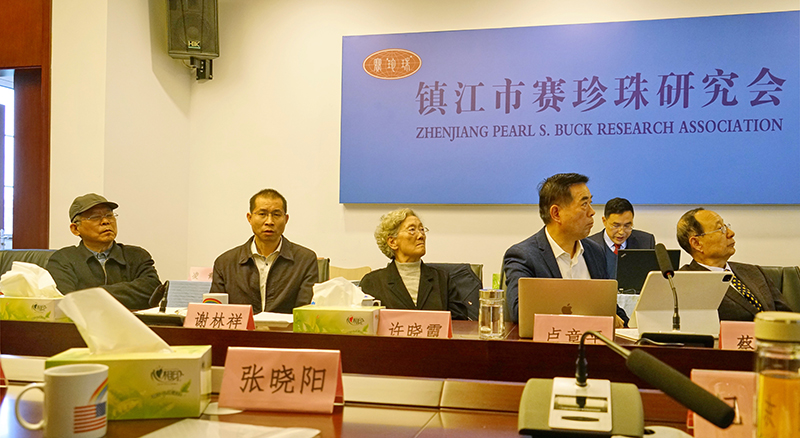 在镇江分会场,镇江市赛珍珠研究会荣誉会长许晓霞,会长卢章平,名誉会长蔡文俊,副会长袁平,副会长兼秘书长纪东,顾问王玉国、戴锦美,监事吉建霞,副秘书长裴伟、龚舒琴,理事唐其光、董晨鹏、戴清杰、史戈挥、陈大经、刘蓓、汪晓梅等30名会员参会,并特邀市社科联副主席谢林祥、江苏科技大学外语学院副院长曾景婷到会指导、交流。