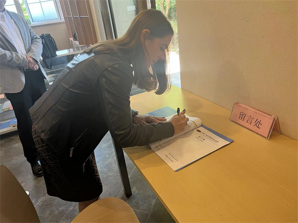 蒲蒞莎处长在参观赛珍珠纪念馆结束时兴致勃勃地在留言本记下了对纪念馆的美好印象。