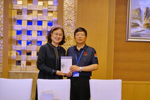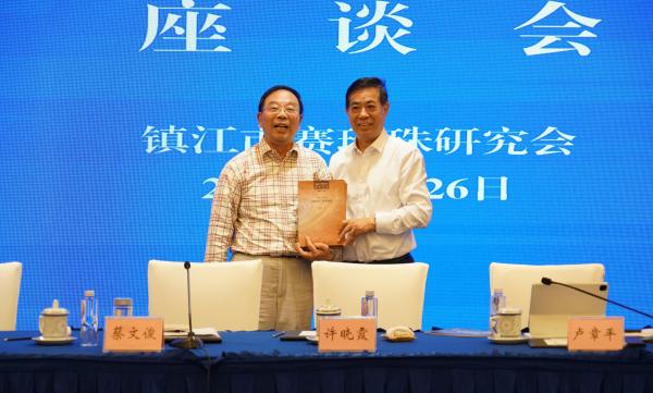 座谈会上江大赛珍珠研究所史挥戈教授向赛珍珠研究会顾问王玉国赠送研究资料