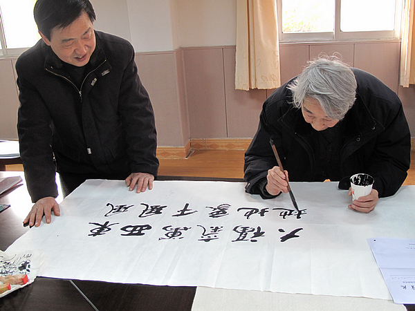 赛珍珠纪念馆开馆以来吸引众多中外嘉宾,老年书画协会连续两年举办这一颇富特色的活动。书画家们奉献上一百多幅书画作品。年过八旬的书法家蔡慕尧连续写成了10幅以赛珍珠为题材的对联。他说,楹联是中国最朴实的文化形式。赛珍珠生活的那个年代,神州赤贫,灾祸连连,但笔下的王龙有了多余的钱,不忘买副对联,并且在农具上贴上福字,为兵匪、灾害频发的年景祈福,而今可谓东风西风吹万千气象,大地福地真第一江山了。书画协会会长陈学思表示,赛珍珠之所以为大家所敬仰,去年还获得新中国60周年“中国缘•十大国际友人”提名奖,一个重要的原因是大家感念她对中华文化走向世界的贡献。今天我们以这种方式不仅表达对社区居民的关爱,也是对这位国际友人弘扬中华文化的追思和纪念。近百位社区居民,获赠200多幅字画。社区杨书记向镇江市赛珍珠研究会领导表示,要进一步利用赛珍珠资源,打造和谐社区,建设大爱镇江。
