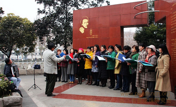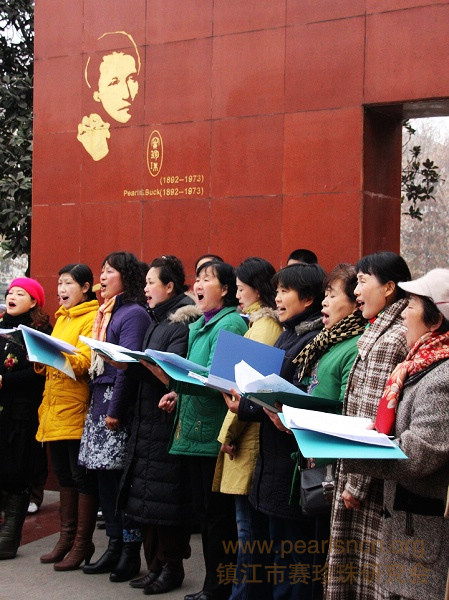 2008年12月20日下午,镇江市古运河畔的珍珠广场寒风猎猎,冷气逼人,然而赛珍珠纪念墙前却热情洋溢,歌声嘹亮。镇江市老专家艺术团的老同志们尽展歌喉,同唱《怀念歌唱赛珍珠》。