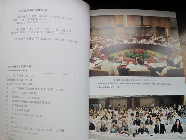《赛珍珠纪念文集》第四辑近日由江苏大学出版社出版。作为去年纪念赛珍珠诞辰120周年活动的国际学术研讨会的成果汇编,该文集共收录近40篇赛研学术论文,由赛珍珠研究会会长许晓霞和副会长赵珏主编,全国政协原外事委员会主任赵启正在去年纪念活动上的讲话《文化的沟通是各国人民沟通的基础》一文作代序。