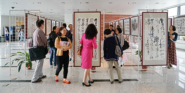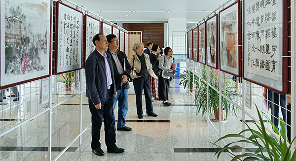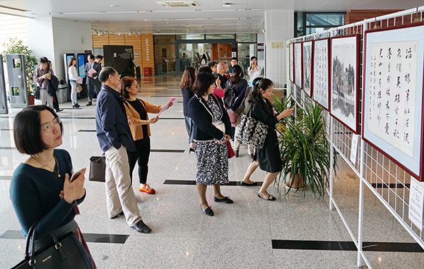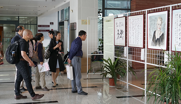 2017年5月5日上午,南京大学仙林校区湖面波光粼粼,校园百草丰茂,江苏大学和镇江市赛珍珠研究会在杜厦图书馆举行赛珍珠主题诗书画巡展(南京大学站)开幕式,展出各地艺术家合璧创作的书画64件,内容涉及人物画像、故居写生、大地主题书画。开幕式由镇江市赛珍珠研究会名誉会长、江苏大学图书馆馆长卢章平主持,江苏大学副校长宋余庆、南京大学图书馆副馆长罗钧、镇江市赛珍珠研究会会长蔡文俊先后致辞,江苏大学图书馆向南京大学赠送《大地珍珠---赛珍珠主题诗书画作品集萃》。镇江市老领导许晓霞、副会长兼秘书长纪东、副会长吴庆宏、副秘书长裴伟、龚舒琴、赛珍珠纪念馆馆长唐其光和来自江苏大学、中国人民大学、南京大学、南京师范大学、武汉大学、上海同济大学、上海海洋大学、武汉大学、山西大学、浙江工商大学、淮海工学院等高校的数十位学者及南京大学仙林校区的师生参观了巡回展。