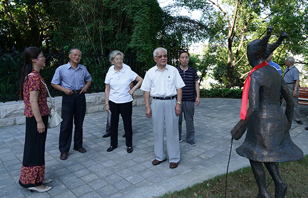 在赛珍珠坐像前合影合影