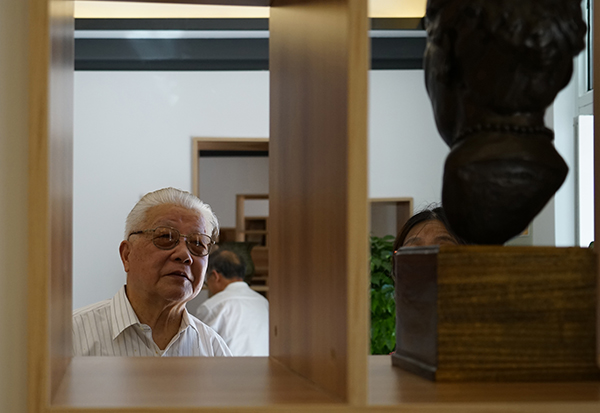 市委原书记、市人大常委会原主任钱永波在观看赛珍珠铜像