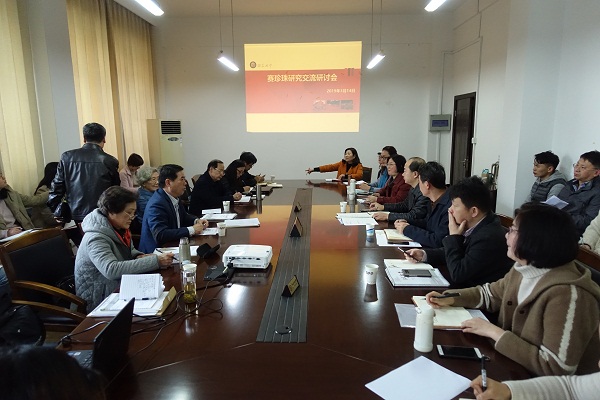 座谈会交流过程中,市赛研会会长卢章平从赛珍珠文化研究工作、赛珍珠文化传播与传承、赛珍珠文创产品和旅游以及基地建设与队伍建设等四个方面,详细介绍了2019年镇江市赛珍珠研究会的工作安排,并指出社科应用研究“赛珍珠研究专项”为市赛珍珠研究会今年工作计划的重点。希望三所高校利用自身组织化程度高、团队实力强的特点,认真做好专项研究,扩大赛珍珠文化研究的外延,使镇江成为国际赛珍珠研究的风向标和样板田。市赛研会原会长许晓霞肯定了三所高校多年来的赛研成果,希望今后能汇聚更多资源力量,加强赛珍珠文化品牌的打造推广。还对2019年中国镇江赛珍珠国际学术研讨会、申报赛珍珠非物质文化遗产路径研究、校本教材开发等方面提出了要求和设想。市赛研会名誉会长蔡文俊认为,经过十多年几代赛研人的不懈努力,镇江的赛研工作已经取得了可喜的成绩;在亚洲范围内,赛珍珠研究也已呈现出蓬勃发展之势。希望高校加大对赛研人才的培养,进一步加强校际之间的沟通和配合,争取早日在镇江本地培养出具有全国乃至全球影响力的赛研专家。