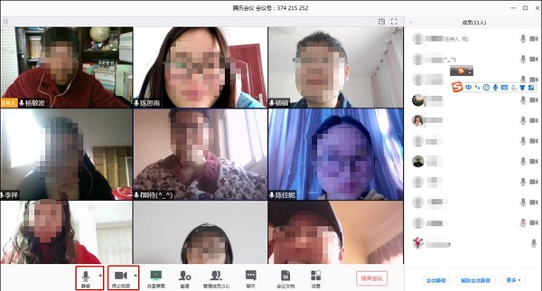 4. 进入会议后请点击“静音”并“停止视频”,如需发言可以“解除静音”、“开启视频”