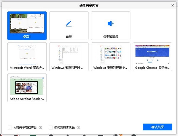 5. 如需共享幻灯片,请点击“共享屏幕”,选择想要共享的PPT即可