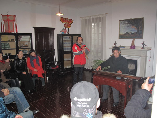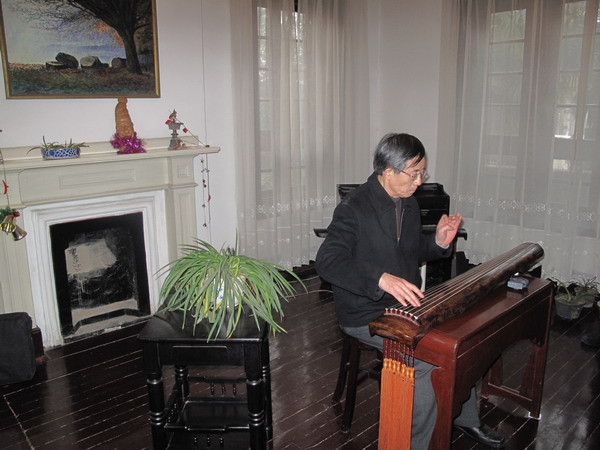 下午,梦溪古琴社的一班爱好者,来到赛珍珠故居,在老师的指导下,纷纷端坐在古琴旁献曲一首,或激越欢快,或低吟婉转,在赛珍珠舅舅从美国寄来的风琴旁,古琴悠扬,中西音乐在此交融,人们的思绪横跨东西,超越古今,最后一曲《平沙落雁》琴声回荡在春天的山谷,人们陶醉在音乐的梦境中。