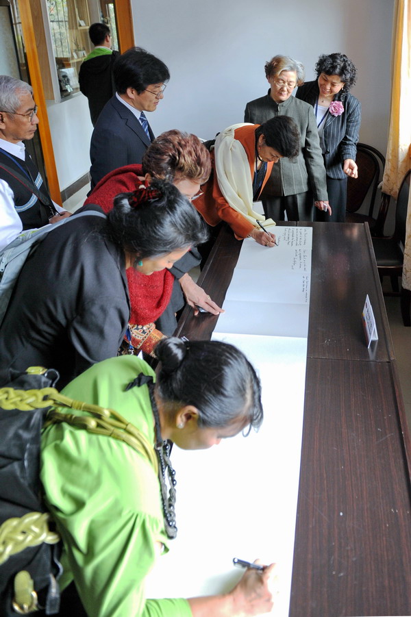 本月21日,由美国亚洲协会、中国人民对外友好协会主办的“2012年亚太地区杰出女性论坛”的与会各国女杰来我馆参观。