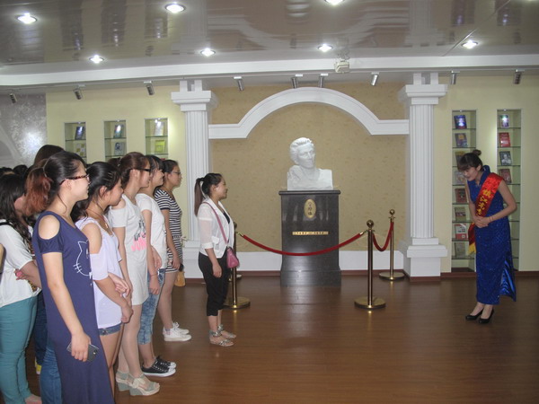 今天,我们在她的纪念馆前,举行高专实习基地挂牌和纪念馆中英文讲解比赛,这是纪念杰出女性、传承伟人精神的又一实际行动。
