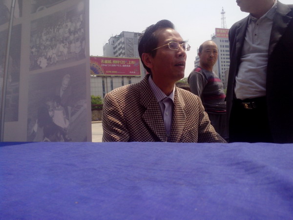 一位热心市民特意来到广场向有关研究者介绍刘龙老师当年研究赛珍珠的珍贵轶事
