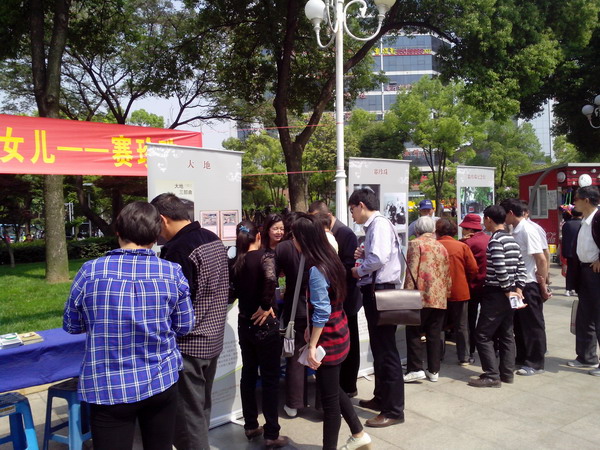 五月一日,镇江市赛珍珠研究会组织相关人员再次来到作为“城市客厅”的大市口广场,开展赛珍珠知识进社区活动,宣传镇江的女儿赛珍珠在文学、慈善、文化交流等方面的生平业绩。劳动节一大早,镇江市赛珍珠纪念馆和故居的相关人员和志愿者,冒着高温,迎着骄阳,来到游人如织的城市客厅,一边播放我市文广集团和赛研会联合制作的广播剧《赛珍珠的故事》,一边分发馆折,向前来观看的市民和外地游客推介旅游纪念品,宣传、普及赛珍珠生平事迹和大爱精神。将近一天的宣讲,共分发了近千张宣讲材料,市民和游客借此了解了赛珍珠与镇江、与中国文化的关联。一些市民纷纷循声而至,观看易拉宝、索取宣传材料,特别希望小孩子能像赛珍珠在镇江的童年那样,从小喜爱读书,培养大爱胸怀,树立远大理想,成社会栋梁之才。一些外地游客也表示,希望我市宣传好赛珍珠,这对于我市打好名人品牌,创新发展思路,促进文化、宣传、旅游等相关行业提升品位,扩大影响,具有不可替代的价值。