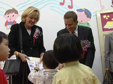 Members of Pearl S. Buck International, accompanies by Ms. Xu Xiaoxia and Mr. Chen Guodong, Vice Director of Zhenjiang Education Bureau, visited Zhenjiang Special Education Center. The guests were so excited to enjoy dancing, painting as well as cooking displayed by the disabled students. They highly appreciated the love to the students and the good study and life environments. At last, both guests and students sang a song "Snow White".